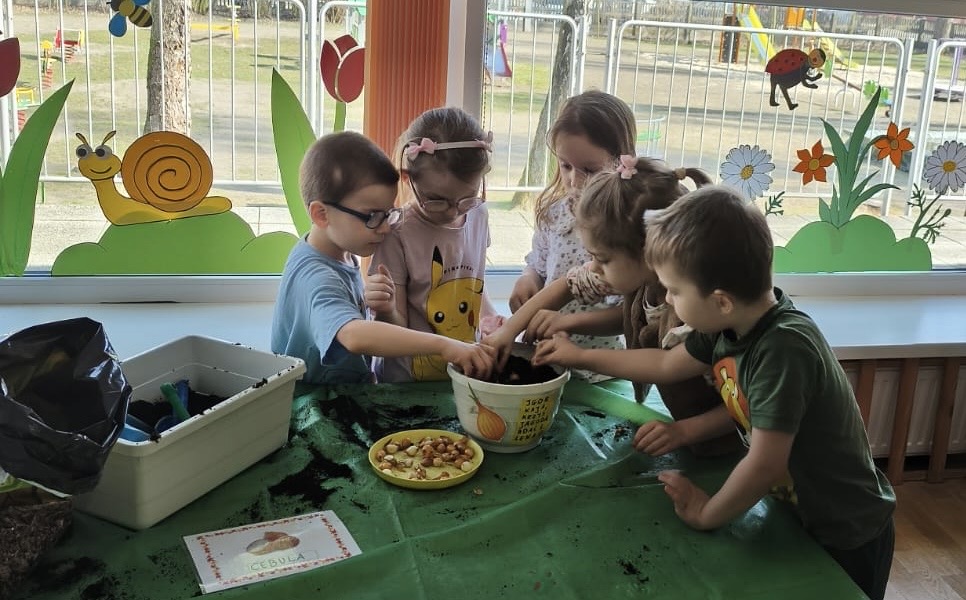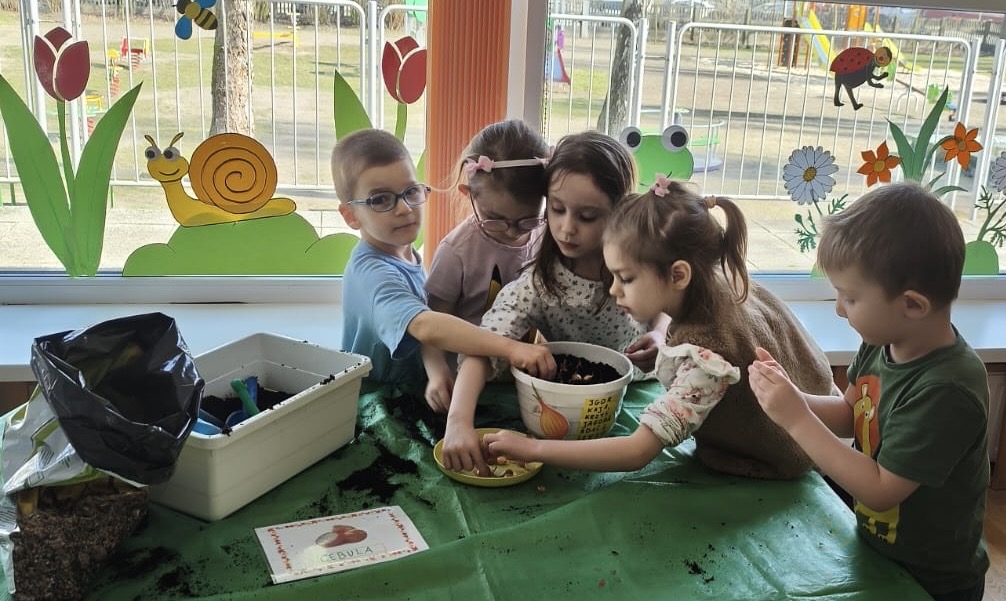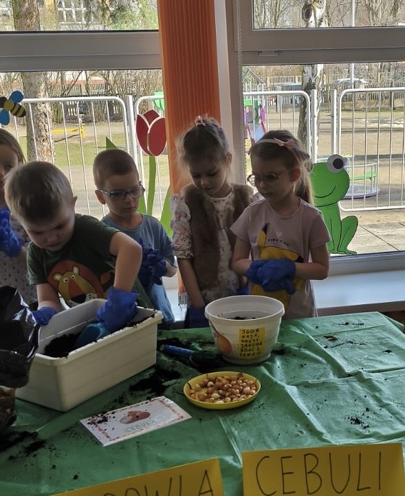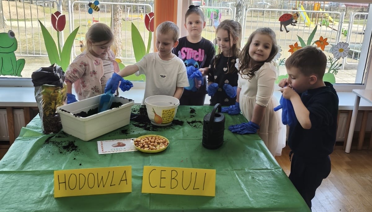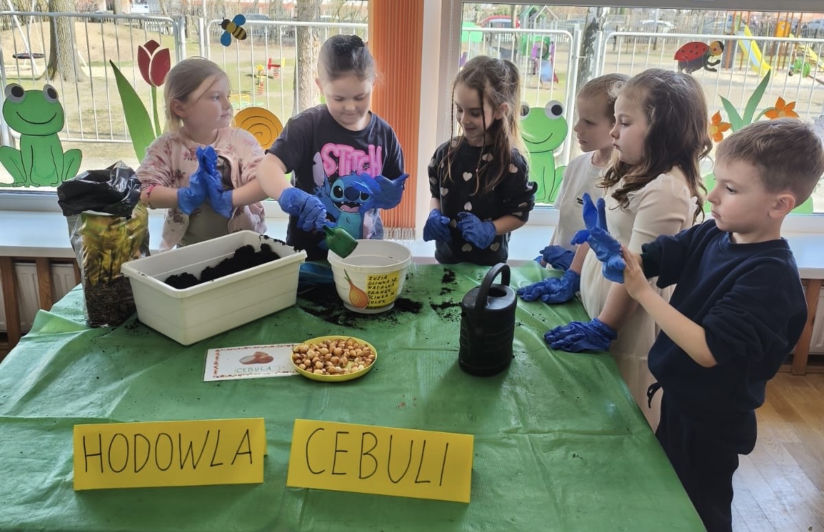 Wraz z nadejściem wiosny nasze przedszkolaki posadziły cebulę. Przed przystąpieniem do pracy dzieciaki poznały etapy wzrostu roślin cebulkowych oraz dowiedziały się, co jest potrzebne roślinom by urosły.
